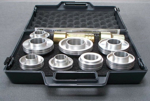 The Seal Buddy, made in the USA, by Adapt-A-Case, is the best transmission torque converter and axle seal driving set on the market. Adapt-A-Case developed this 10-piece set with tougher driving heads milled from aluminum. Each is perfectly sized featuring a groove with an o-ring, retaining it firmly in the driver. The Seal Buddy includes two driver handles carved from steel. Intentionally hollowed, two lengths allows for seal replacement on assembled transmission for a quick repair. The shorter for axle seals in car, the longer for torque converter seals.